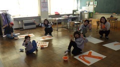 慣れない刷毛を使いながらも、一生懸命色塗りをする2年生。文字の周りにはそれぞれが模様も描き、一人一人の思いを込めたポスターに仕上がりました。