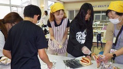 「もしも」のときのことを想定しながら、おいしく楽しく防災体験ができました。みんなそろって、ランチルームでいただきました。