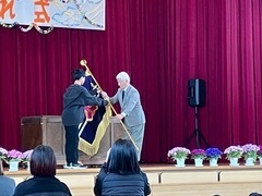 最後に児童代表が閉校記念事業実行委員長に校旗の返納と三郷小学校の解散宣言を行い、三郷小学校の最後を締めくくりました。
